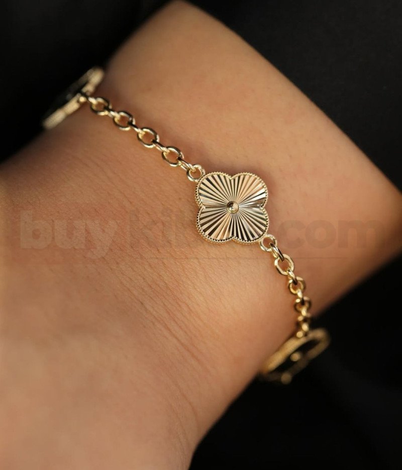Dört Yaprak Detaylı Altın Bileklik | buykibris.com