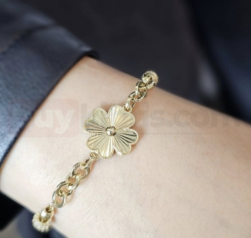 Dört Yapraklı Altın Motifli Zincir Bileklik | buykibris.com