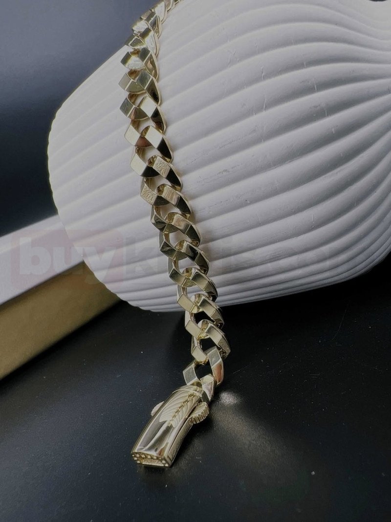 Güçlü duruşuyla dikkat çeken bu kalın örgü formdaki altın bileklik, modern ve iddialı tarzı sevenler için tasarlandı. Parlak yüzeyi ve ağır duruşuyla bilekte etkileyici bir görünüm sunarken, kaliteli işçiliği sayesinde uzun ömürlü kullanım sağlar.