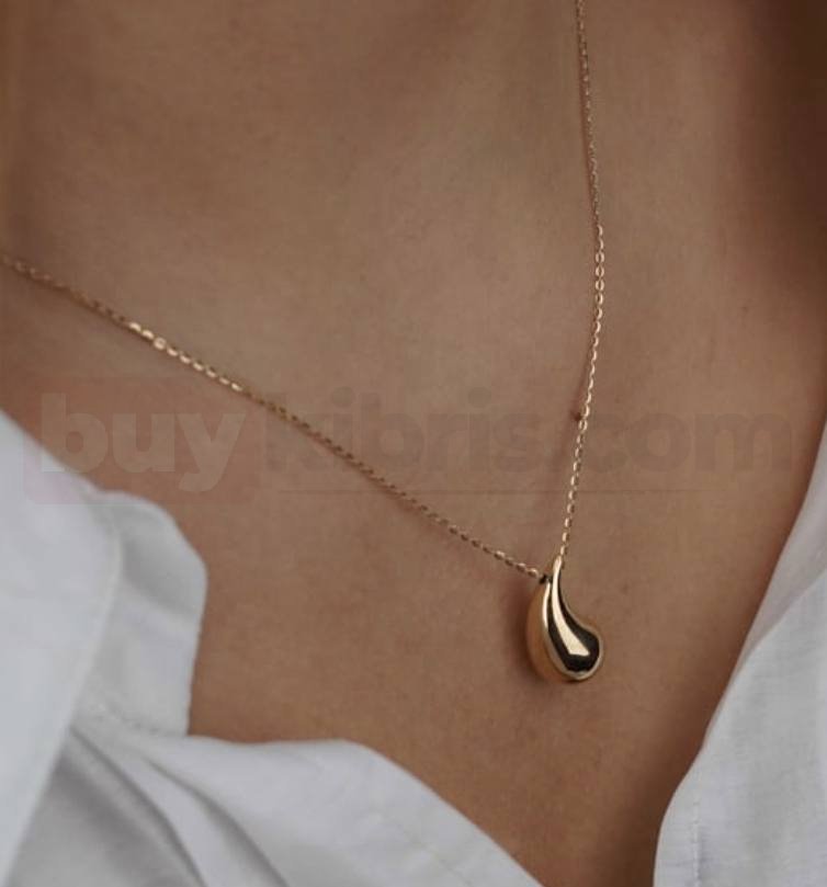 Zarif damla formunun modern bir yorumuyla tasarlanan bu altın kolye, boyunda ince ve etkileyici bir ışıltı oluşturur. Akıcı formu ve pürüzsüz parlak yüzeyi sayesinde hem minimal hem de sofistike bir duruş sunar.