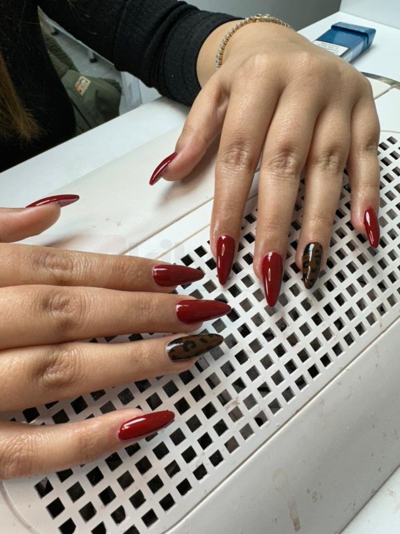 Bordo tırnakların göz alıcı derinliği, bu modelde modern bir dokunuşla birleşiyor. Uzun, badem formundaki tırnaklara uygulanan parlak bordo ton; hem güçlü hem de son derece feminen bir duruş sergiliyor. İki tırnağa eklenen leopard deseni ise tasarıma cesur ve karakterli bir hava katıyor. Bu model, kendine güvenen, stiline iddialı bir dokunuş eklemek isteyenlerin vazgeçilmezi olacak nitelikte. Hem gece kombinlerine hem günlük şıklığa kolayca uyum sağlayan bu tasarım, şıklığın en çarpıcı hâlini parmak uçlarına taşıyor.