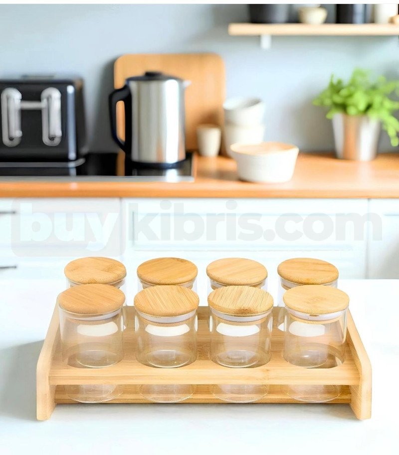 Bambu Kapaklı 8’li Baharat Seti – Standlı | buykibris.com