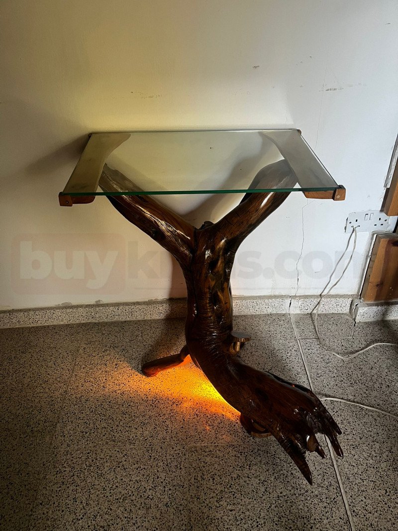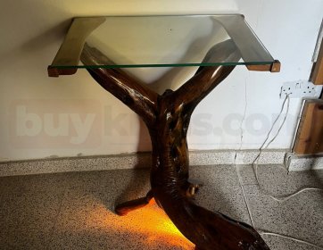 Işıklı Köşe Sehpa – Tek Parça Zeytin Ağacı Gövdeden, Cam Üst Tablalı, Özel Aydınlatmalı 7 Yıllık El İşçiliği Tasarım | buykibris.com