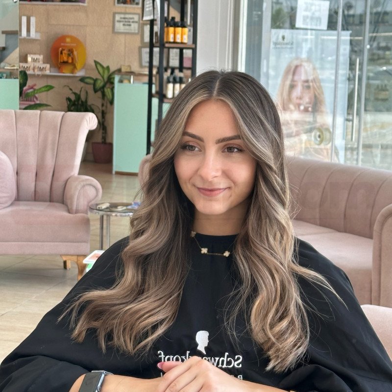 Renk uygulamasında doğal dip korunmuş, yüz çevresinde aydınlatmalarla daha canlı ve yumuşak bir ifade elde edilmiştir. Küllü ve bej alt tonlar, saçın boyuna ve yüz hatlarına uygun şekilde yerleştirilerek sert kontrastlardan uzak, akıcı ve modern bir geçiş sağlanmıştır. Bu teknik sayesinde saç hem daha dolgun görünmüş hem de ışığı çok daha dengeli şekilde yansıtan bir yapı kazanmıştır.