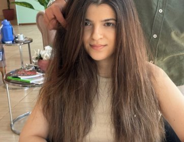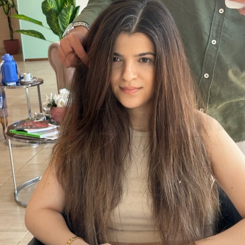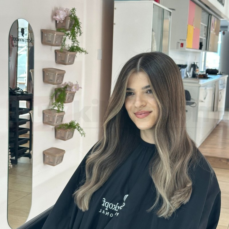 Renk çalışmasında doğallık ön planda tutulmuş, saçın kendi tonuyla uyumlu ışıltılar tercih edilerek canlılık ve derinlik kazandırılmıştır. Kesim tekniği ise saçın hareketini artıracak şekilde planlanmış, günlük kullanımda kolay şekil alabilen, uzun süre formunu koruyan bir yapı hedeflenmiştir. Uygulama sürecinde kullanılan profesyonel ürünler sayesinde saçın parlaklığı ve sağlıklı görünümü desteklenmiştir.