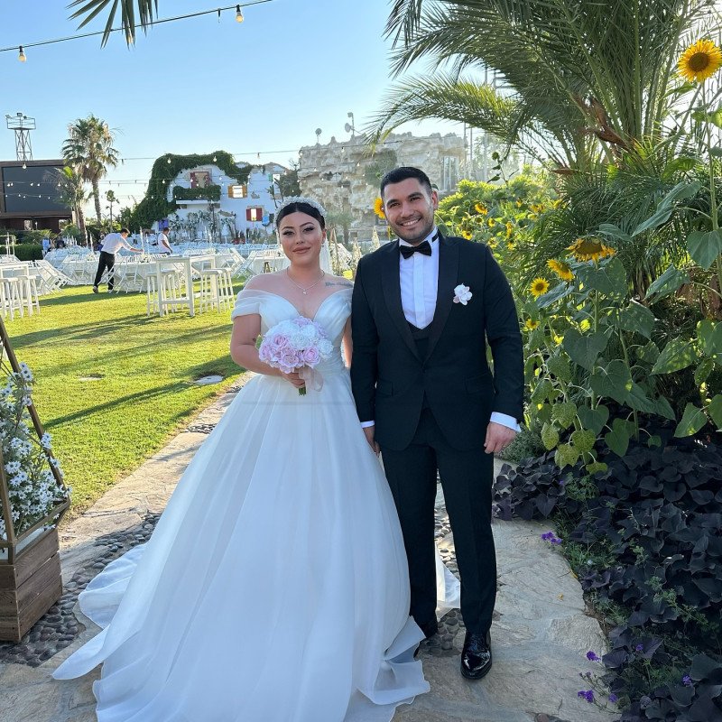 Saç tasarımı ise gelinliğin formu ve konsepti göz önünde bulundurularak, klasik ve modern çizgilerin dengeli bir birleşimi şeklinde uygulanmıştır. Özenle şekillendirilen topuz formu, inci ve kristal detaylı aksesuarlarla tamamlanarak asil ve sofistike bir görünüm elde edilmiştir. Duvağın yerleşimi ve saç aksesuarının konumlandırılması, fotoğraf çekimlerinde ve törende maksimum estetik etki yaratacak biçimde planlanmıştır.