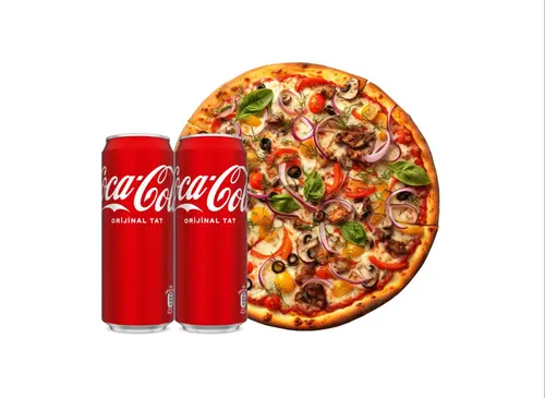 Pizza sosu, peynir, soğan, domates, dana pastırma, yeşil biber, zeytin