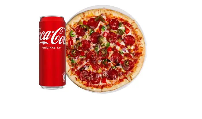 Pizza sosu, peynir, soğan, dana kıyma, domates, jalapeno biberi