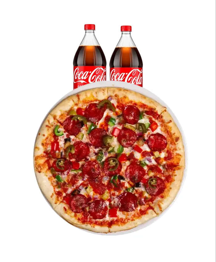 Pizza sosu, peynir, soğan, dana kıyma, domates, jalapeno biberi