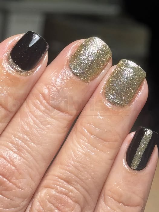 Siyah Altın Simli Kısa Tırnak Modeli
