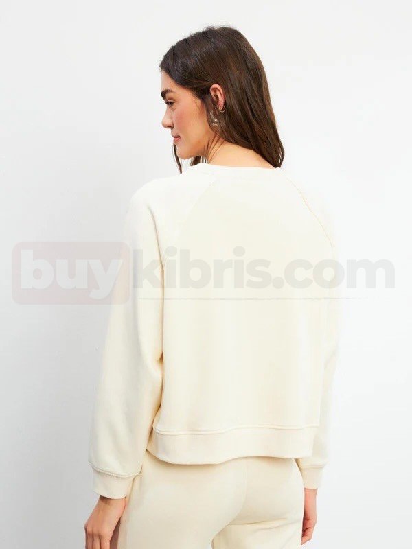 Önü Kısa Arkası Uzun Balon Kollu Sweatshirt kremrengi | buykibris.com