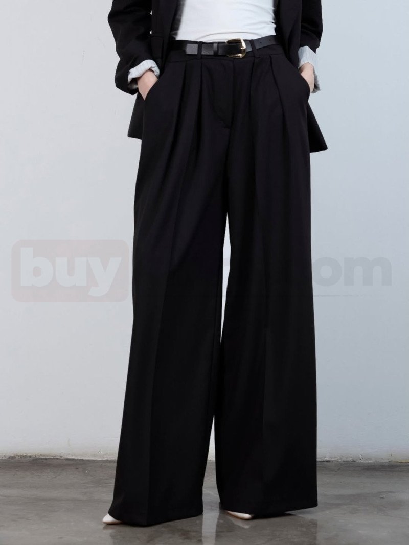Akıcı ve dökümlü kumaşı sayesinde hem resmi hem de günlük kombinlere kolayca uyum sağlar. Pile detayları pantolona modern ve sofistike bir duruş kazandırırken, siyah rengi kombinleme açısından maksimum esneklik sunar.