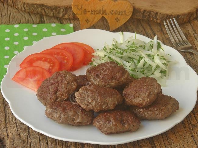 Köfte, domates ve yeşillik eşliğinde sunulan klasik tabak.
