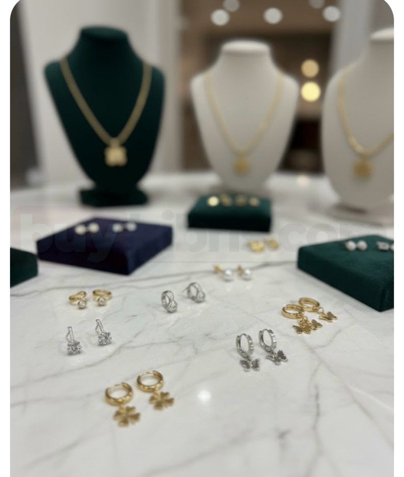 Bu görselde yer alan küpe ve kolye modelleri, sade ve zarif tasarımlarıyla ön plana çıkmaktadır. Küçük taşlı küpeler ve minimal kolyeler, günlük kullanımda rahatlık sağlarken şık bir tamamlayıcı olarak kullanılabilir. Ürünler vitrin ve set sunumuna uygun şekilde sergilenmiştir.