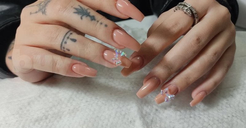 Uzun kare form üzerine uygulanan nude ton ve kristal aksesuar detayları, sade ama göz alıcı bir görünüm sunar. Parlak yüzey sayesinde tırnaklar sağlıklı ve bakımlı görünür. Özel günlerde ve şık kombinlerde tercih edilen modern bir modeldir. Profesyonel sabitleme tekniği ile aksesuarlar güvenli şekilde uygulanır. Hem zarif hem iddialı bir tasarım arayanlar için ideal bir seçenektir.