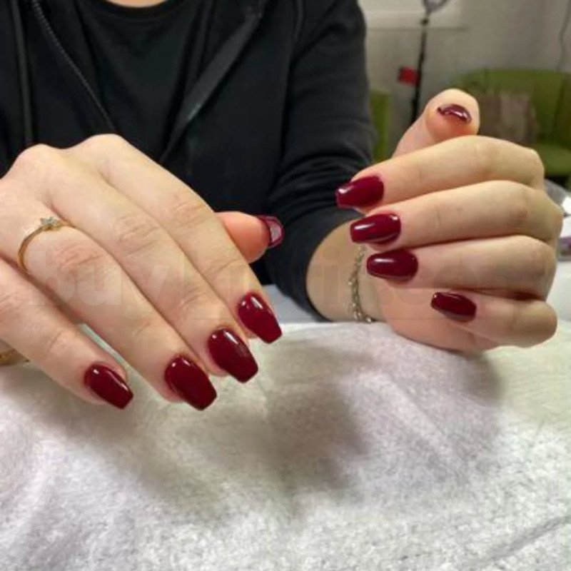 Zamansız bordo tonu, kısa kare form ile birleşerek hem güçlü hem de sade bir görünüm sunar. Tek renk parlak uygulama sayesinde tırnaklar bakımlı, temiz ve profesyonel durur. Günlük kullanım için oldukça konforlu olan bu model, aynı zamanda özel davetlerde de şıklığı tamamlar. Jel sistem ile uygulandığı için uzun süre parlaklığını korur ve soyulma yapmaz. Minimal ama etkileyici bir stil arayanlar için ideal bir tercihtir.