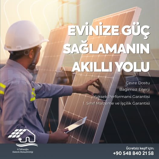Ev ve iş yerleriniz için modern, çevre dostu ve yüksek verimli güneş enerji sistemleri kuruyoruz. Elektrik faturalarınızı düşürmenizi sağlarken aynı zamanda kendi enerjinizi üretme özgürlüğü sunuyoruz. Dayanıklı ve 1. sınıf malzemeler kullanarak uzun ömürlü sistemler tasarlıyor, profesyonel ekip ile montaj ve teknik destek hizmeti veriyoruz.