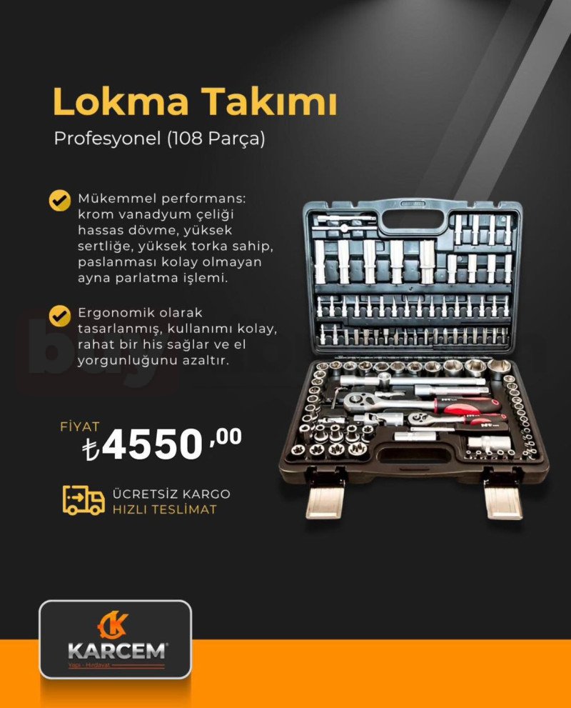Krom vanadyum çelikten üretilmiş, yüksek tork dayanımına sahip ve paslanmaya karşı dirençli yapısıyla uzun ömürlü kullanım sunar. Ergonomik tasarımı sayesinde rahat kavrama sağlar ve el yorgunluğunu azaltır. 108 parçalık zengin içeriğiyle 4550 TL fiyatla, ücretsiz kargo ve hızlı teslimat avantajıyla satıştadır.