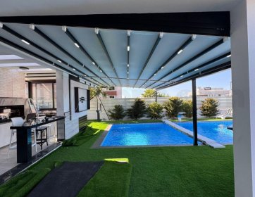Cems Dış Mekan Yaşam Alanları tarafından uygulanan bu otomatik pergola sistemi, havuz ve veranda alanlarını dört mevsim konforlu şekilde kullanabilmeniz için tasarlanmıştır. Motorlu raylı mekanizma sayesinde tavan panelleri kolayca açılıp kapanabilir; böylece istenildiğinde tamamen açık gökyüzü keyfi, istenildiğinde tam gölgelendirme sağlanır.