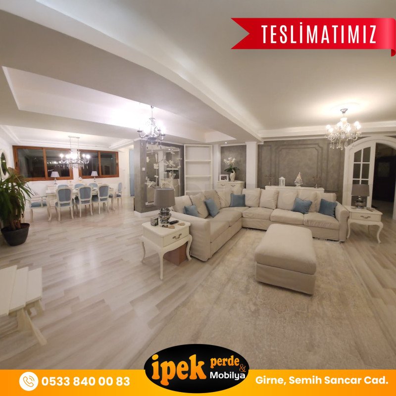 Bu anahtar teslim salon dekorasyon projesi, klasik ve modern çizgilerin dengeli birleşimiyle tasarlanmıştır. Açık tonlardaki zemin kaplaması ve duvar renkleri, mekâna ferah ve geniş bir atmosfer kazandırırken; seçilen mobilya ve aksesuarlar bütüncül bir uyum oluşturur. Geniş oturma alanına sahip köşe koltuk ve tamamlayıcı puf detayı, hem konfor hem de şıklık sunar.