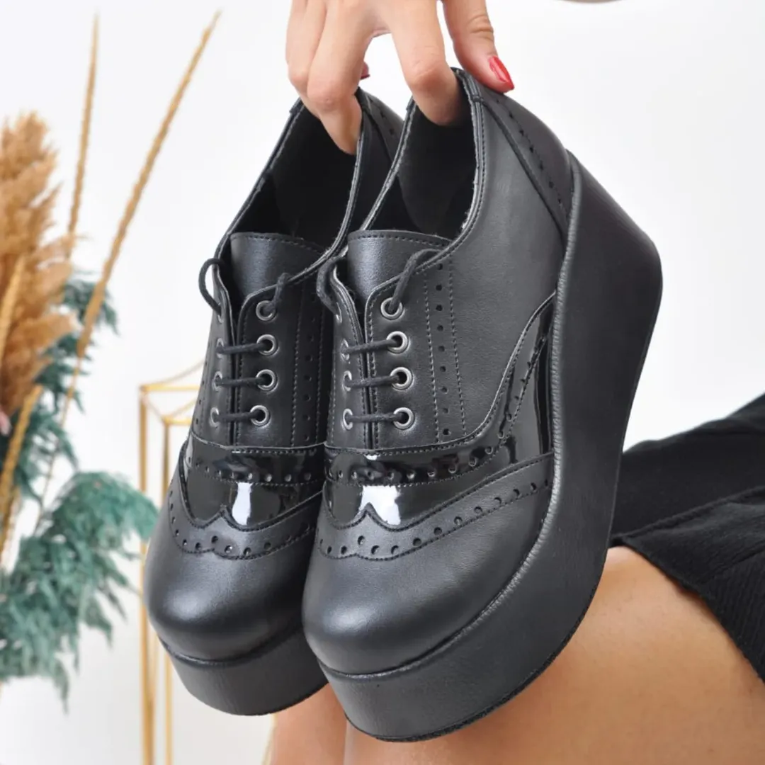 Platform tabanı ve bağcıklı tasarımıyla öne çıkan kadın ayakkabı modeli. Günlük kullanım için hem rahat hem de modern bir seçenektir.